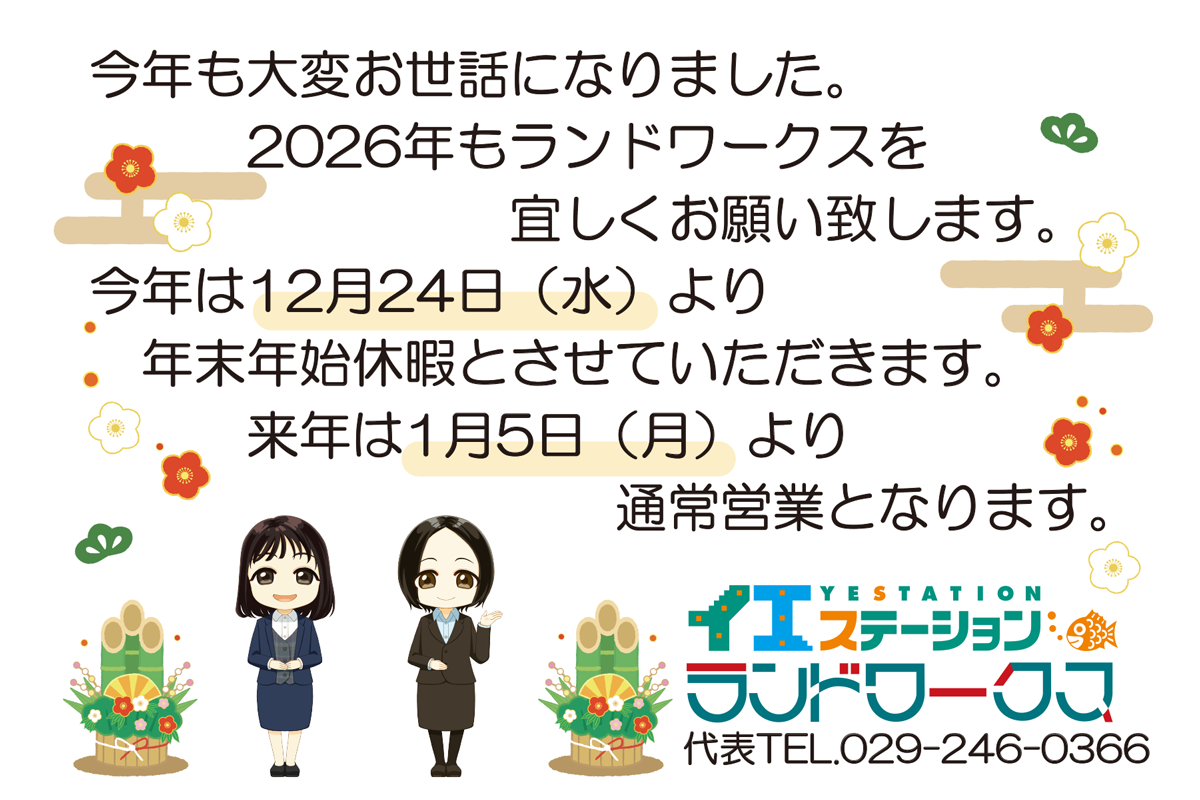 年末年始休暇中のご連絡につきましては、下記のメールアドレスまでお願いします。